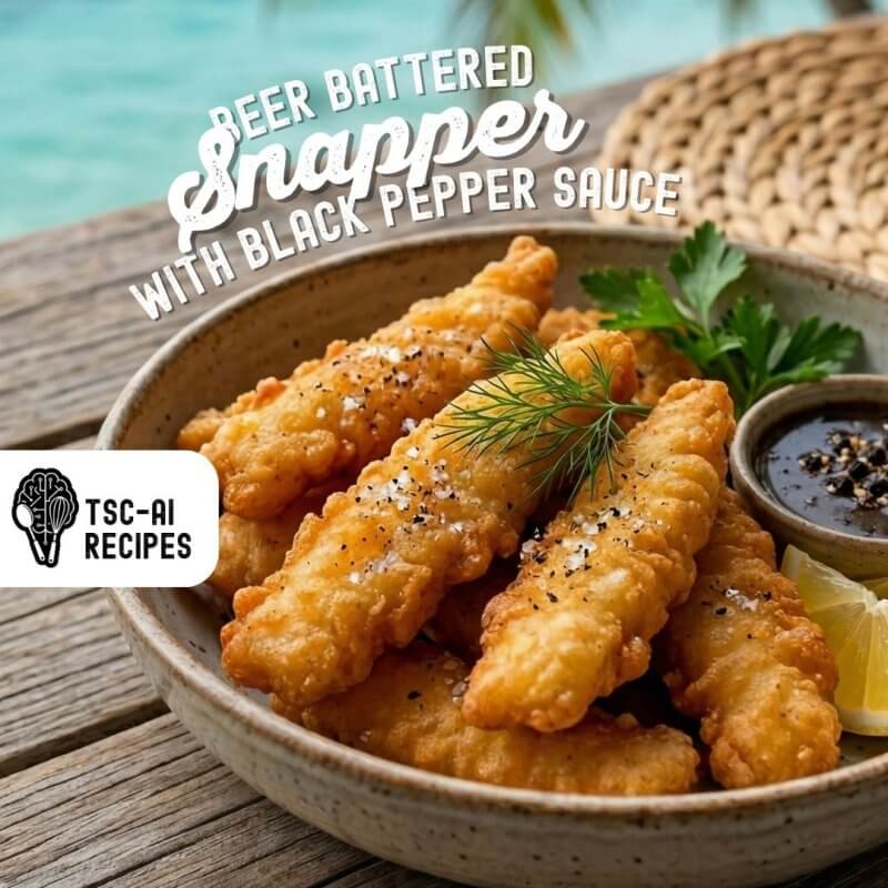 Crispy Beer Battered Snapper Strips with Aromatic Black Pepper Sauce BlogThe Seafood Collective RecipesTSC AI Recipes Crispy Beer Battered Snapper Strips with Aromatic Black Pepper Sauce